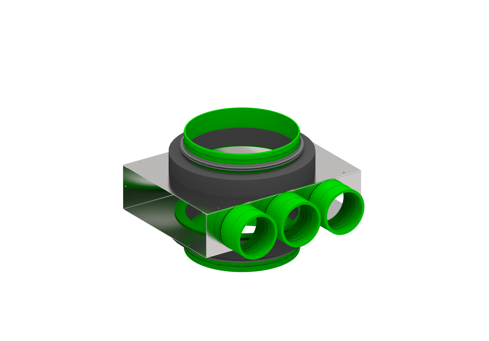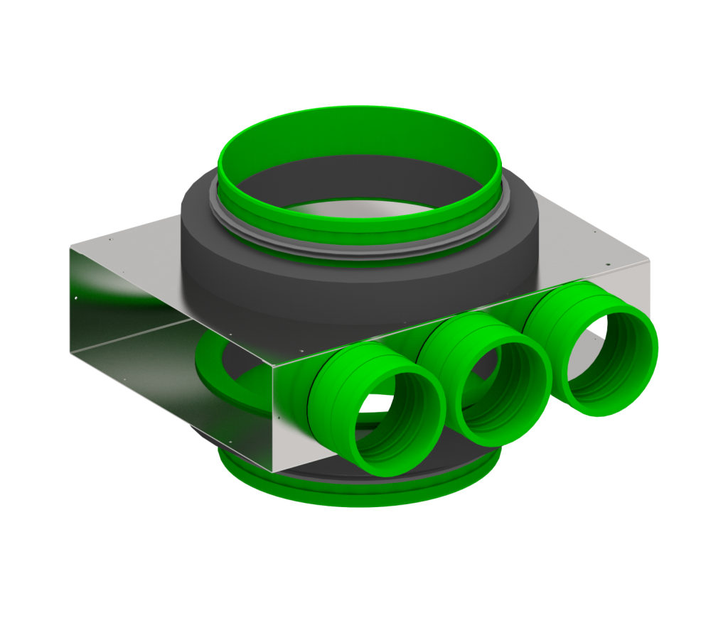 Przyłącze przelotowe 3xØ75 + Ø200/Ø200 wykonane ze stali ocynkowanej to praktyczne i funkcjonalne rozwiązanie umożliwiające jednoczesny montaż rozdzielacza oraz redukcję średnicy kanału. Pozwala to uprościć instalację, zmniejszyć liczbę elementów systemu oraz obniżyć koszty montażu.