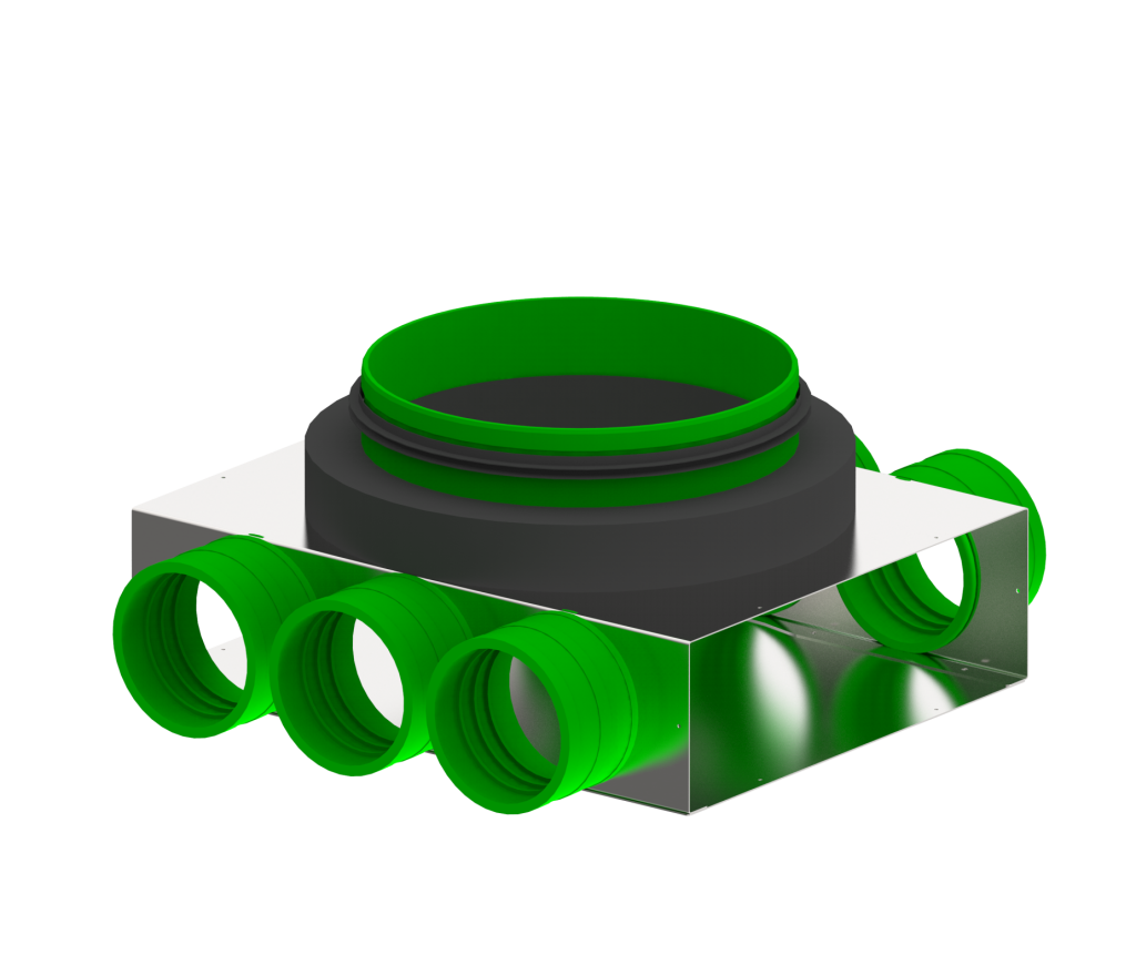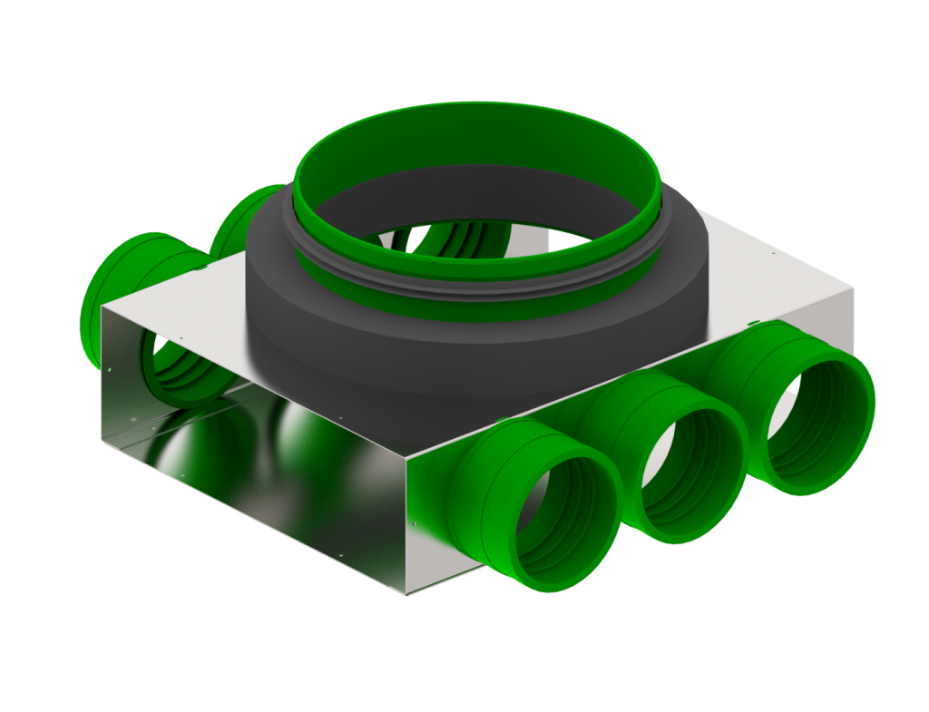 Łączenie przewodów w systemach wentylacyjnych, kompatybilne z elementami Wanas Steel. Skrzynka dolotowa łączy funkcjonalność z wysoką jakością wykonania, gwarantując trwałe, szczelne i ciche połączenia w nowoczesnych systemach wentylacyjnych.