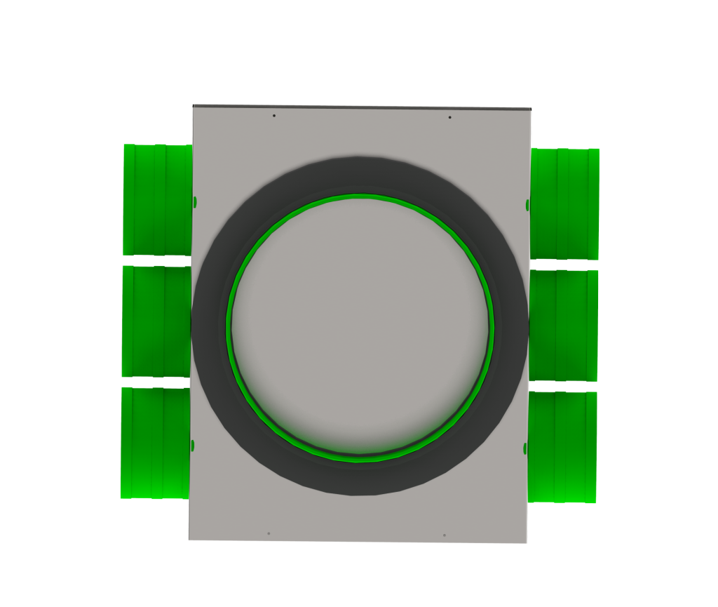 - Wymiary króćców: 6 x Ø75 mm + przyłącze Ø200 mm