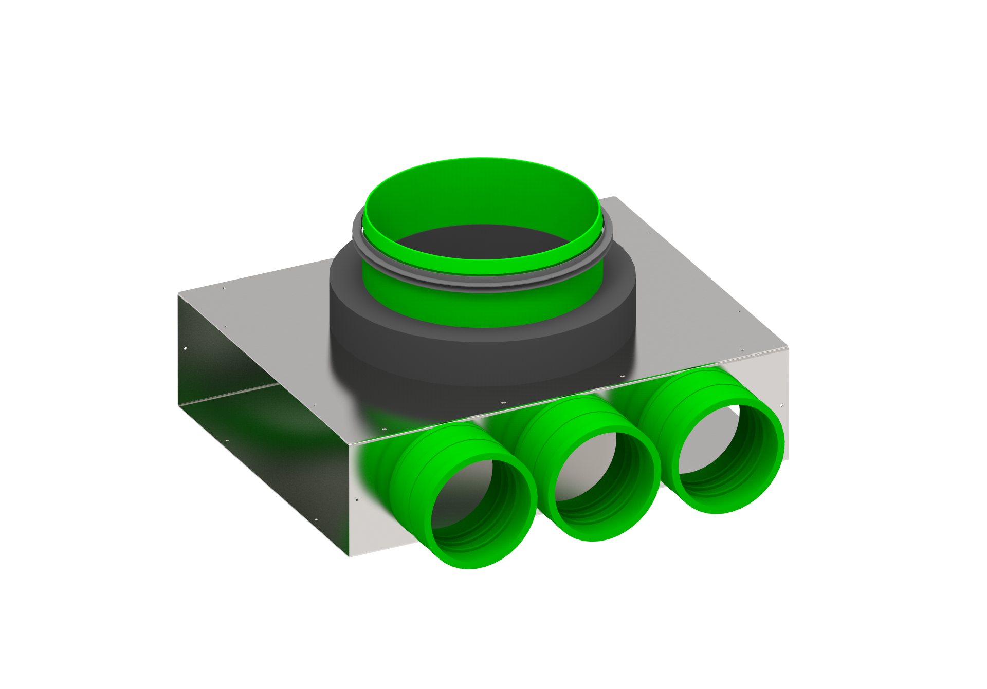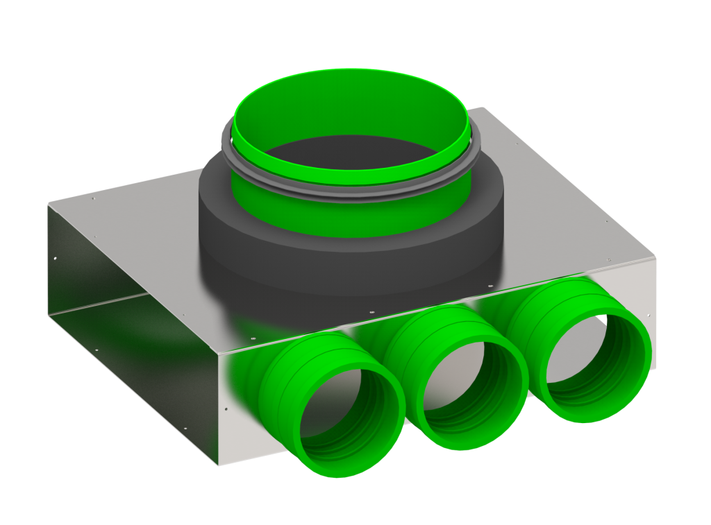 Łączenie przewodów w systemach wentylacyjnych, kompatybilne z elementami Wanas Steel. Skrzynka dolotowa łączy funkcjonalność z wysoką jakością wykonania, gwarantując trwałe, szczelne i ciche połączenia w nowoczesnych systemach wentylacyjnych.