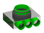 - Wymiary króćców: 3 x Ø75 mm + przyłącze Ø160 mm