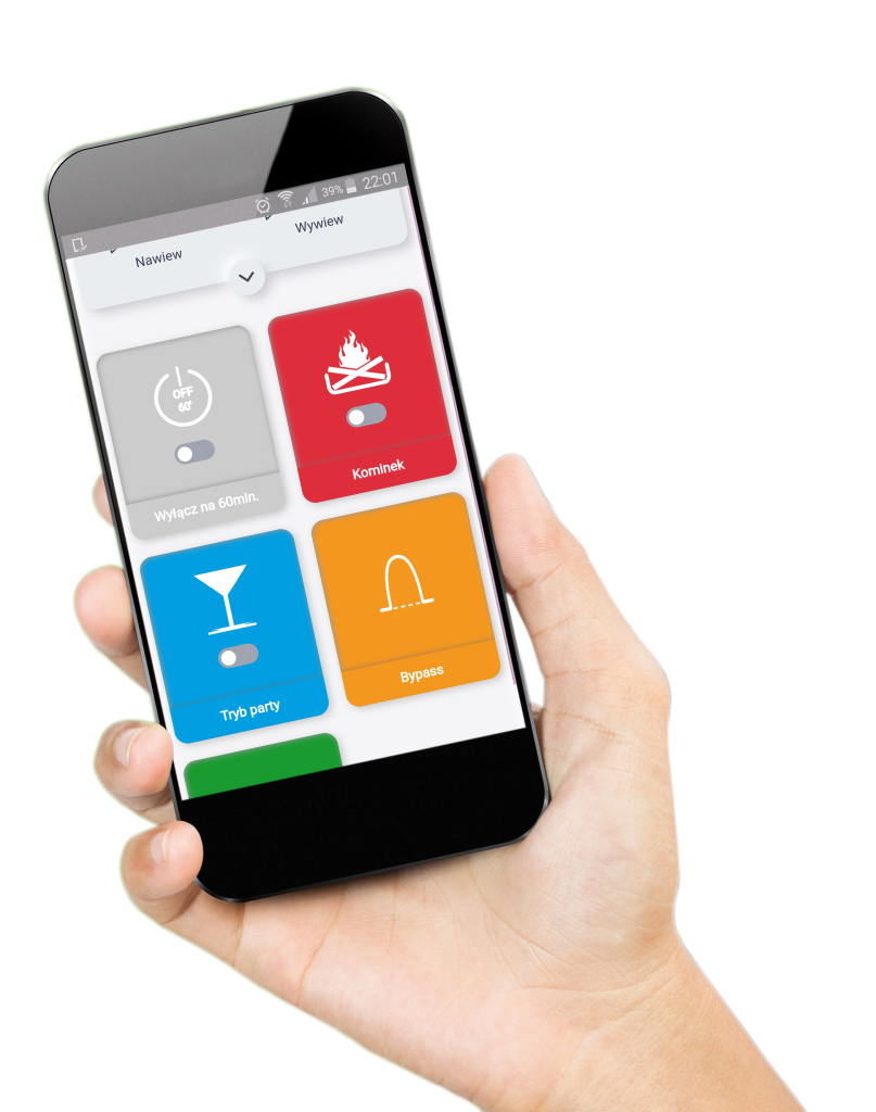 Panel ścienny V3 ma wbudowany moduł Wi-Fi dzięki któremu mamy dostęp do urządzenia z dowolnego miejsca na świecie. Możemy w łatwy sposób ustawić np. program tygodniowy, funcje byppas, impreza oraz sprawdzić historię pracy urządzenia. Dzięki instalacji panelu V3 producent zapewnia zdalny serwis i pomoc w ustawieniu urządzenia.