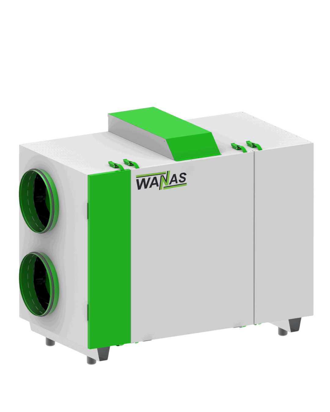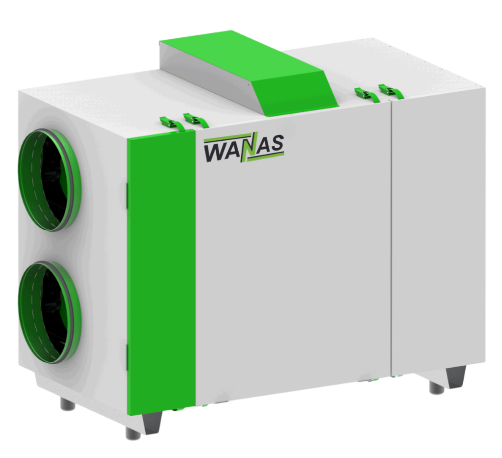 Rekuperatory WANAS wyposażone w wymiennik aluminiowy o wysokiej sprawności to rozwiązanie dedykowane osobom poszukującym efektywnej i trwałej wentylacji mechanicznej z odzyskiem ciepła. Konstrukcja krzyżowo-przeciwprądowa pozwala na optymalne wykorzystanie energii cieplnej, co przekłada się na mniejsze zapotrzebowanie na dogrzewanie powietrza nawiewanego. Wymiennik w centrali usytuowany jest pionowo co umożliwia grawitacyjny odpływ kondensatu do tacy ociekowej. Gwarantuje to wysoką sprawność cieplna w całym okresie pracy, oraz brak konieczności tzw. „przedmuchiwania wymiennika”, aby się z niego pozbyć wody jak to jest w przypadku usytuowania poziomego.