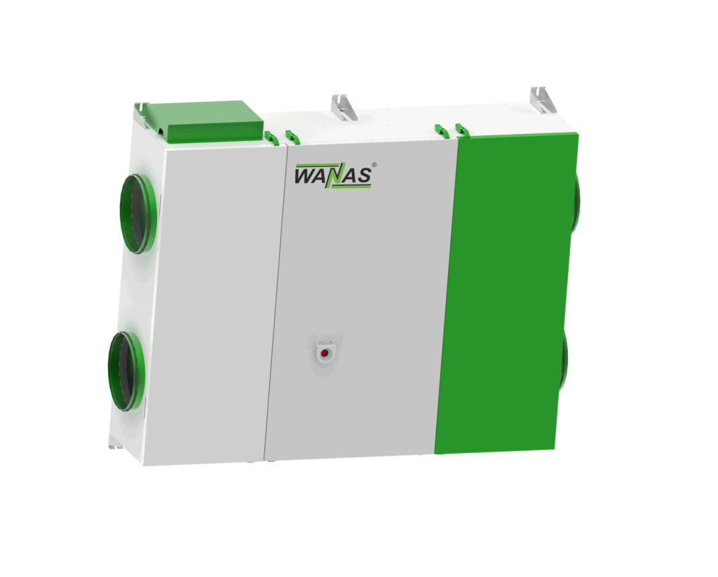 Rekuperatory WANAS wyposażone w wymiennik z tworzywa o wysokiej sprawności to rozwiązanie dedykowane osobom poszukującym efektywnej i trwałej wentylacji mechanicznej z odzyskiem ciepła. Konstrukcja krzyżowo-przeciwprądowa pozwala na optymalne wykorzystanie energii cieplnej, co przekłada się na mniejsze zapotrzebowanie na dogrzewanie powietrza nawiewanego. Wymiennik w centrali usytuowany jest pionowo co umożliwia grawitacyjny odpływ kondensatu do tacy ociekowej. Gwarantuje to wysoką sprawność cieplna w całym okresie pracy, oraz brak konieczności tzw. „przedmuchiwania wymiennika”, aby się z niego pozbyć wody jak to jest w przypadku usytuowania poziomego.