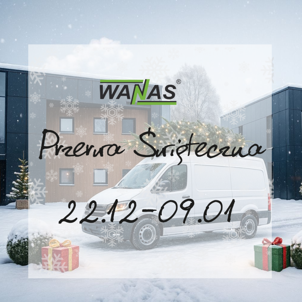 Informujemy, że w związku z nadchodzącymi świętami oraz coroczną inwentaryzacją firma WANAS będzie nieczynna w okresie od 22 grudnia 2025 roku do 9 stycznia 2026 roku.